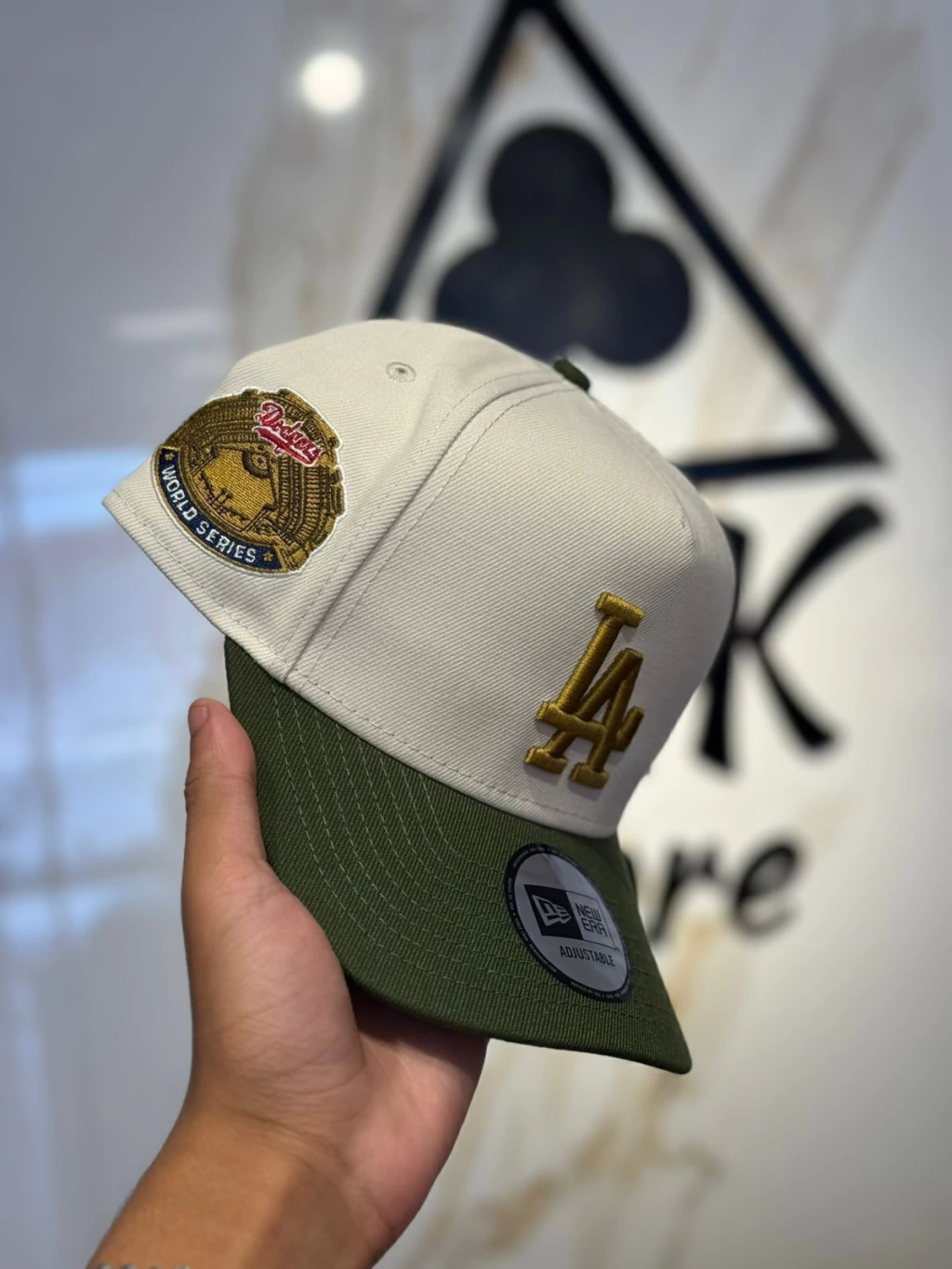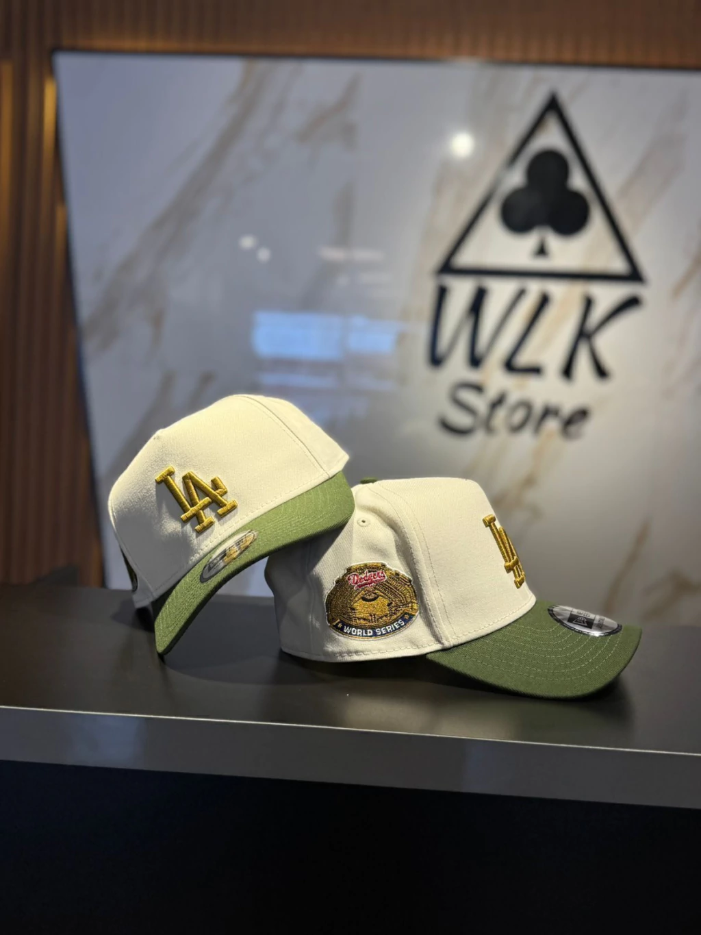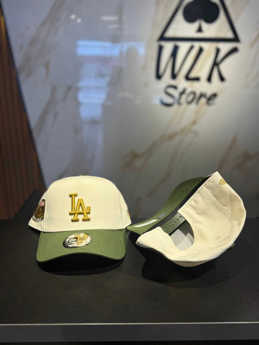 O boné New Era Los Angeles Dodgers (LA) combina autenticidade e estilo esportivo em um visual marcante. Com estrutura na cor bege e aba verde oliva, o modelo apresenta o clássico bordado LA em dourado na parte frontal, destacando a tradição e o prestígio da equipe. Na lateral, o patch bordado da World Series adiciona um toque exclusivo e colecionável. Produzido com materiais de alta qualidade, o boné garante conforto, resistência e ajuste perfeito, ideal para quem busca um acessório moderno e cheio de atitude.