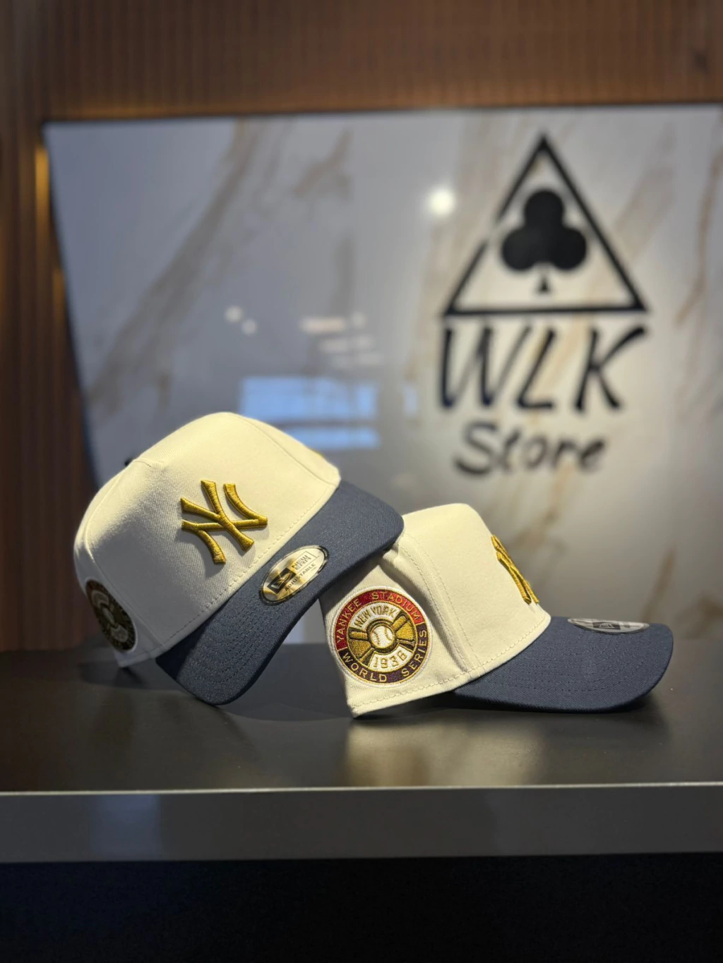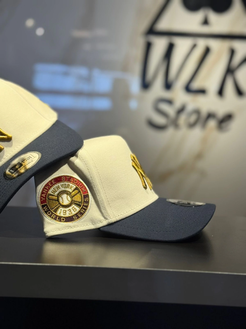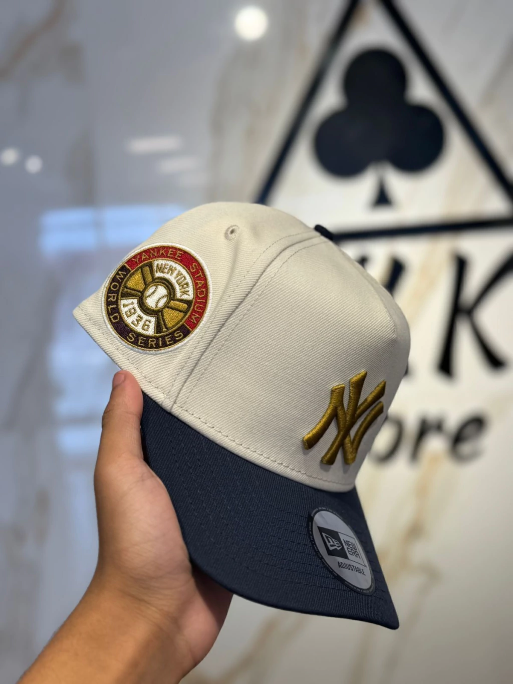 O boné New Era New York Yankees combina tradição e estilo em um design sofisticado. Com estrutura na cor bege e aba azul marinho, o modelo traz o clássico bordado NY em dourado na parte frontal, símbolo marcante da equipe e da cultura streetwear. Na lateral, o patch exclusivo da World Series 1936 reforça o toque esportivo e colecionável da peça. Produzido com materiais de alta qualidade, o boné oferece ajuste confortável, durabilidade e acabamento premium, perfeito para quem busca autenticidade e elegância no visual.