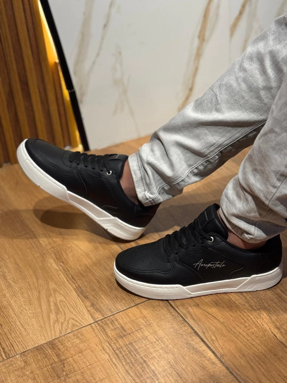 Tênis Aeropostale Cinza, Preto e Branco — o equilíbrio perfeito entre estilo e versatilidade.
