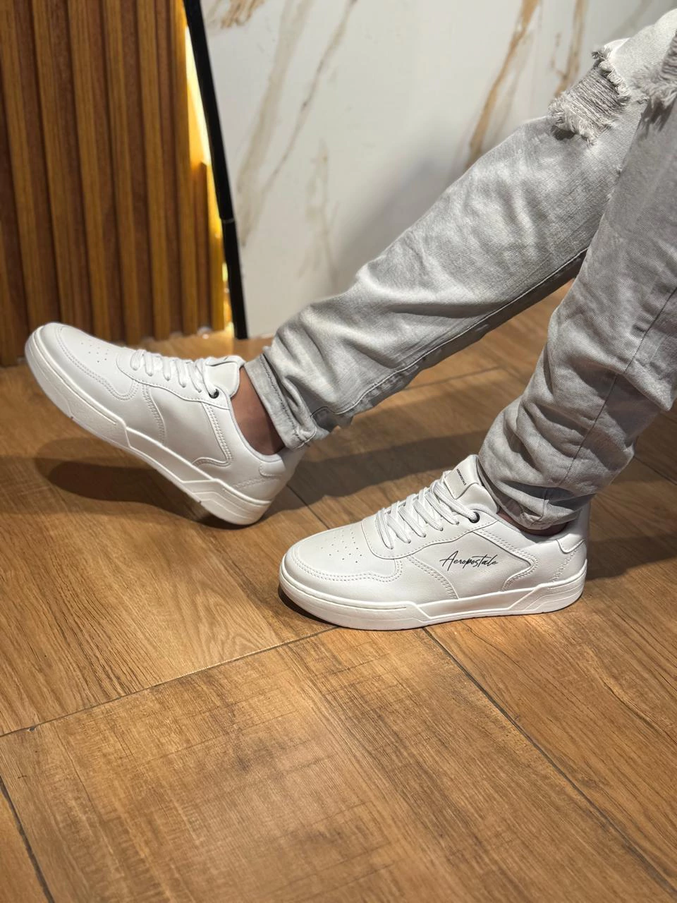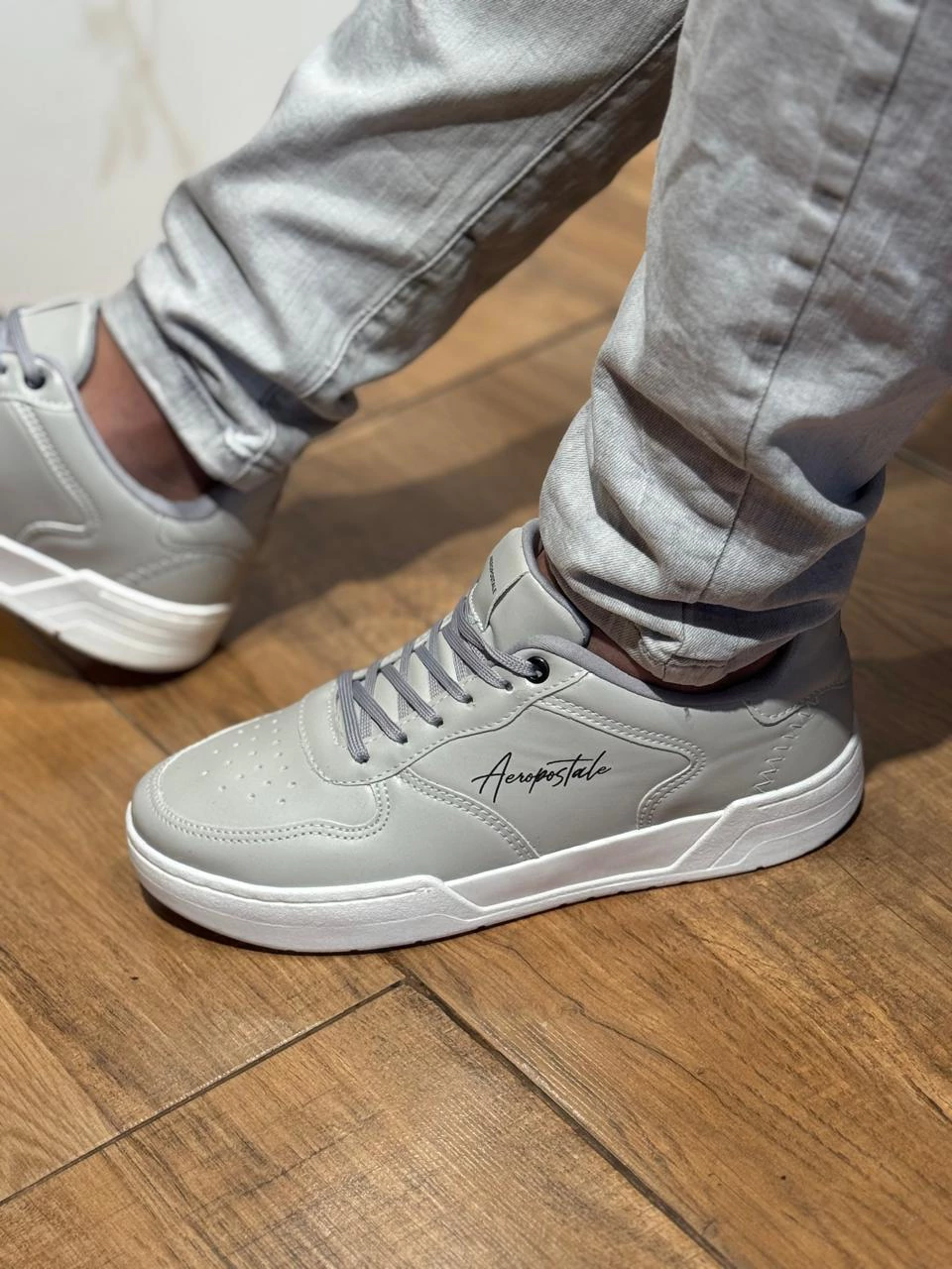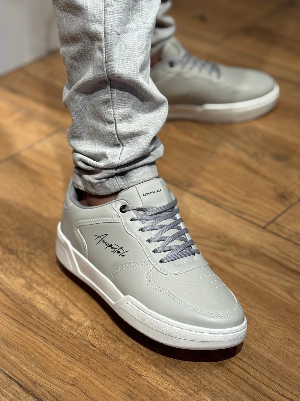 Com cabedal em tom cinza elegante, detalhes em preto e solado branco que destaca o visual, esse modelo une conforto e modernidade. O design clean com o logo Aeropostale na lateral traz um toque urbano e sofisticado, ideal para quem busca um sneaker que combina com qualquer look do dia a dia.
