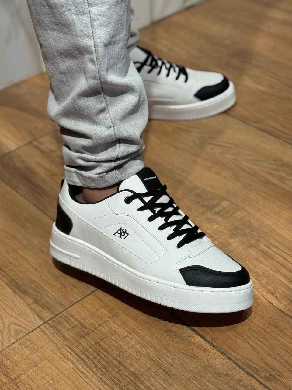 Tênis Aeropostale Branco e Preto — o equilíbrio perfeito entre estilo e atitude.
