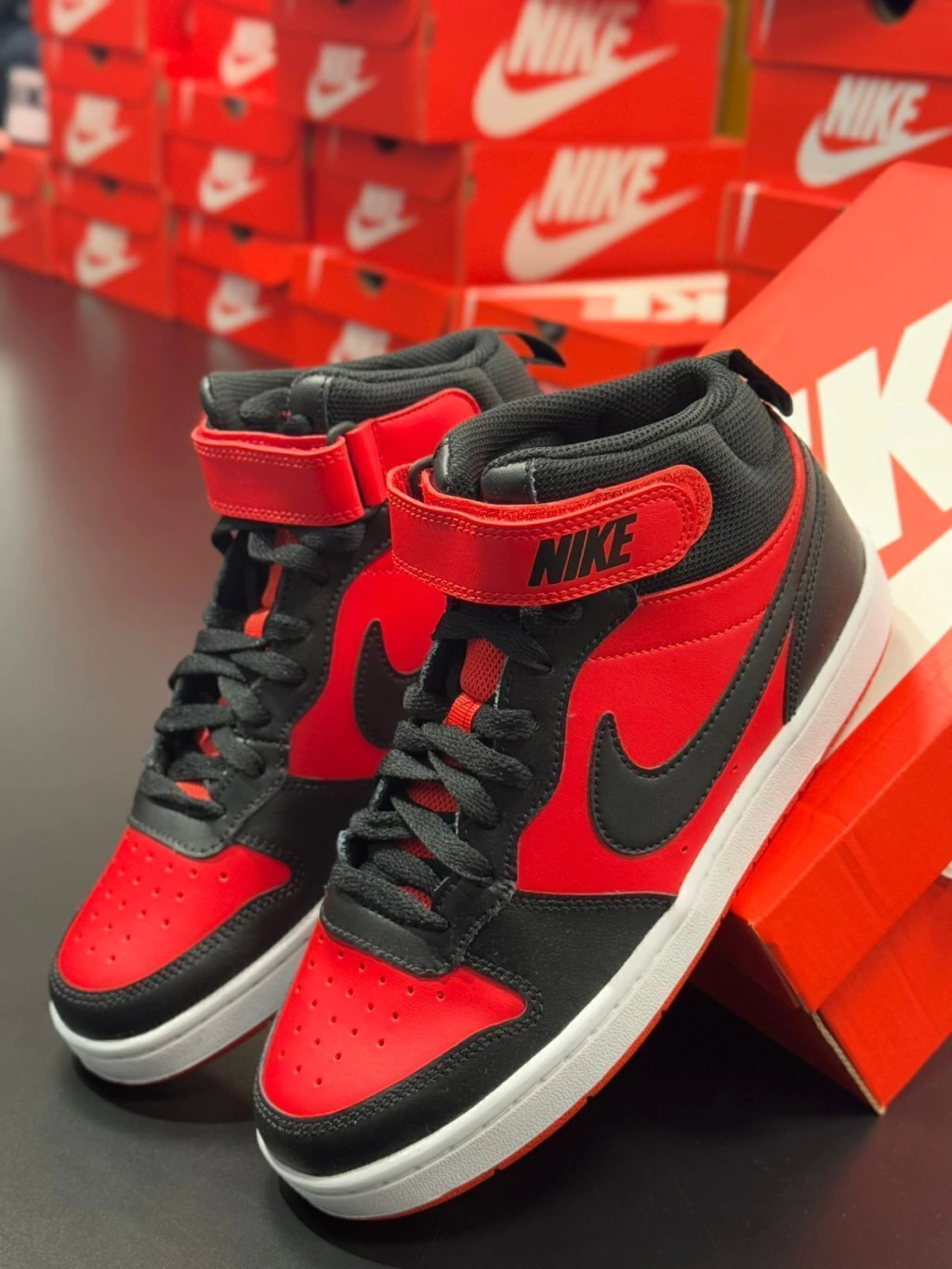 O Nike Court Borough Mid vermelho é a definição de presença e estilo urbano. Inspirado nas quadras, mas feito para as ruas, esse modelo combina atitude esportiva com um visual marcante. Confira os detalhes: