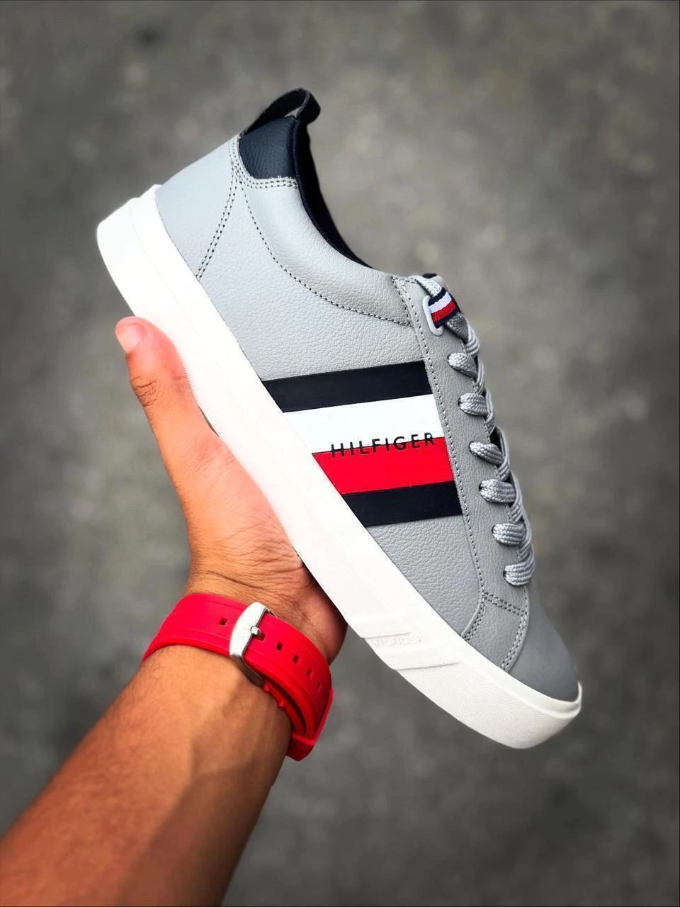 O Tênis Tommy Hilfiger Dino na cor cinza é a definição de casual sofisticado. Ele une a silhueta atemporal da marca com uma paleta de cores neutras e modernas, ideal para elevar o seu visual em qualquer ocasião.
