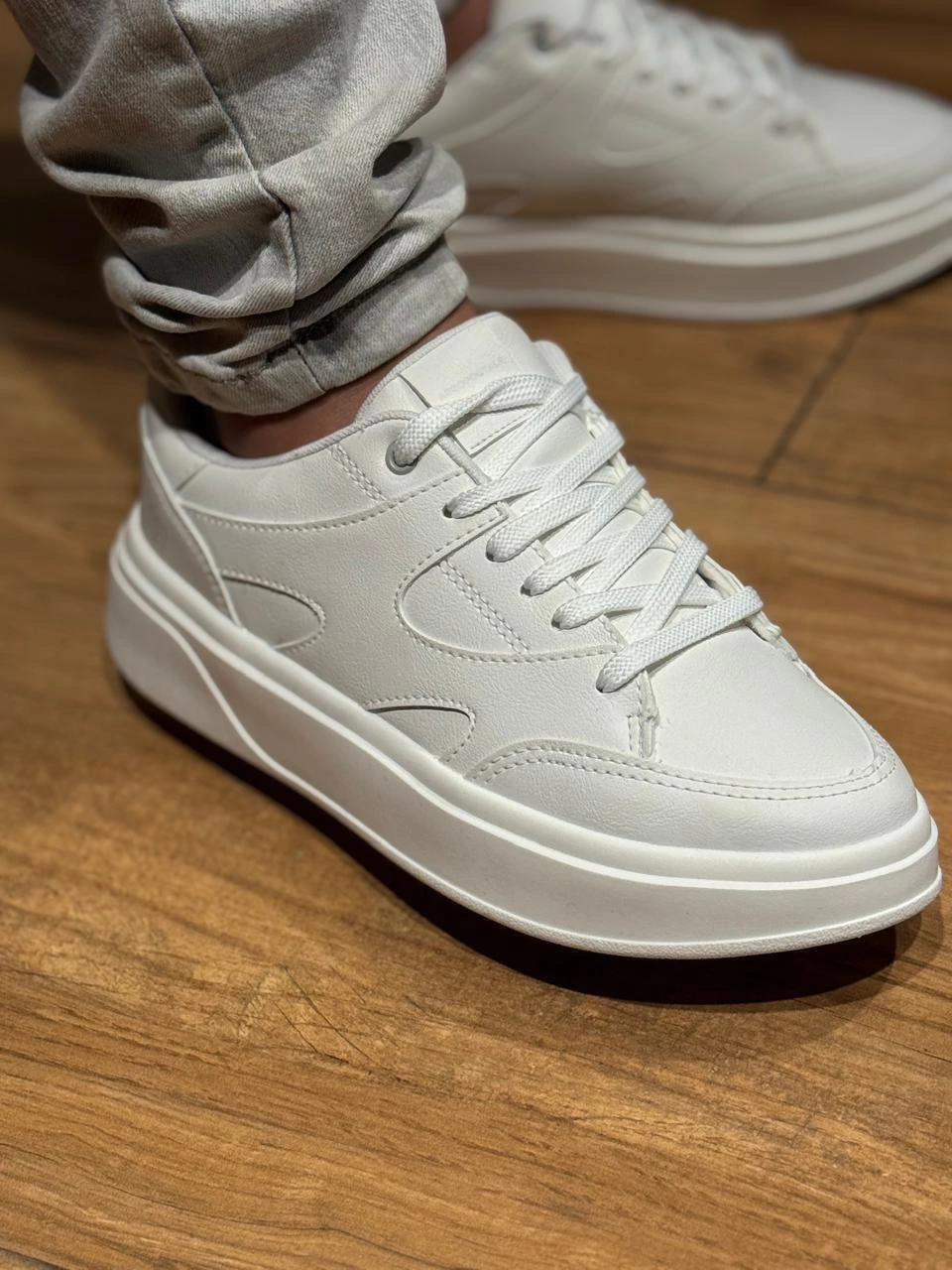 Disponível nas cores branca e preta, é aquele tênis versátil que combina com tudo — da calça jeans à jogger.
